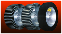 Produciamo ruote di contatto per smerigliatura e pulitura metalli, ruote di contatto in Vulkollan® sia lamellare che liscio, ruote di contatto in lamelle di cotone per la sbavatura con nastri abrasivi di grana grossa, ruote di contatto miste in Vulkollan® e Neoprene per la finitura con nastri di grana fine, ruote di contatto in pelle spugna per lavorazioni di sbavatura e finitura con diverse durezze.